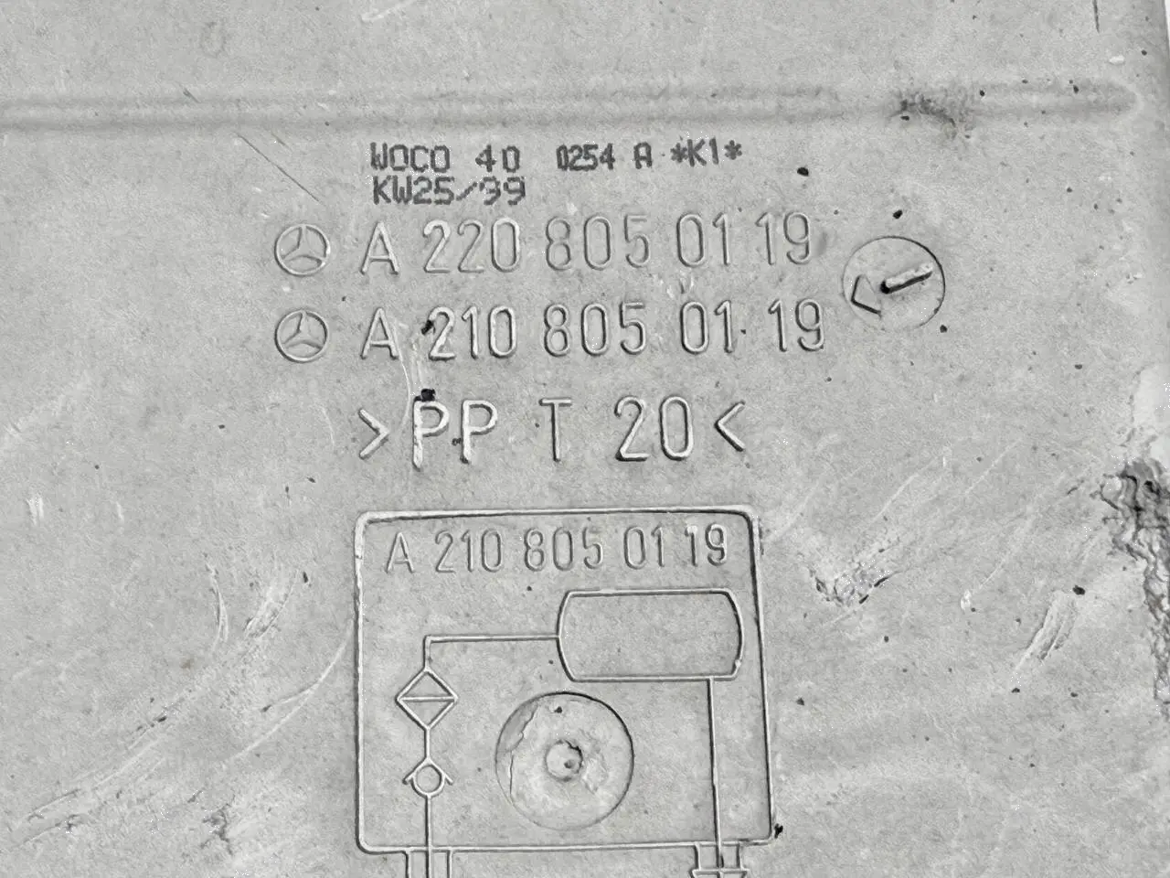 Original gebraucht Vakuumbehälter Unterdruckbehälter Mercedes BENZ CLK 320 1999 W208 2208050119. Oe-Teilenummer: 2208050119, A2208050119, 2208050119, A2208050119, 2208050119, A2208050119, 2108050119